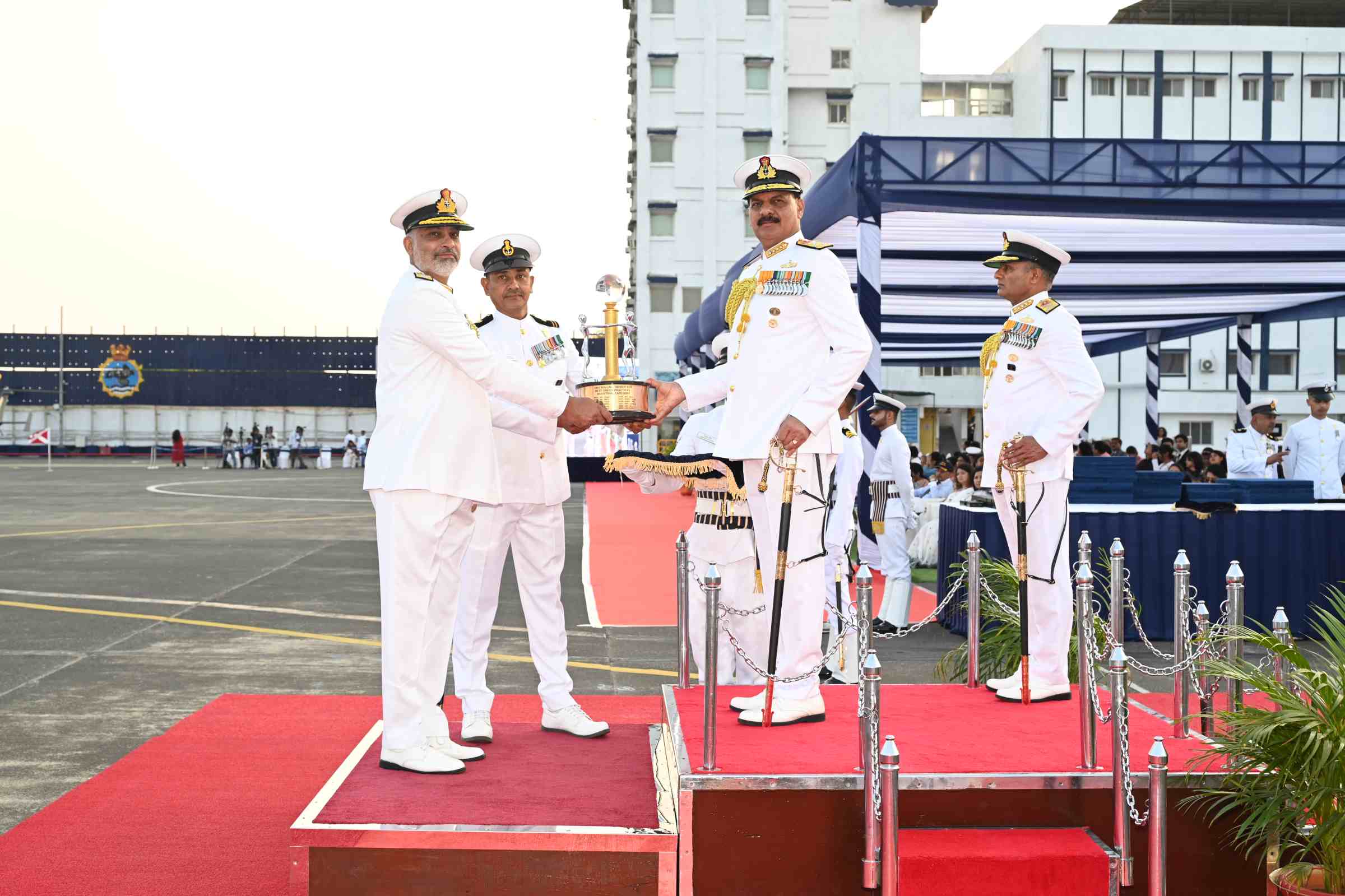 The trophy was presented by Admiral Dinesh K Tripathi, Chief of the Naval Staff to Rear Admiral RS Dhaliwal, Admiral Superintendent, Naval Dockyard, Vizag, during the recently held Naval Investiture Ceremony at Mumbai.