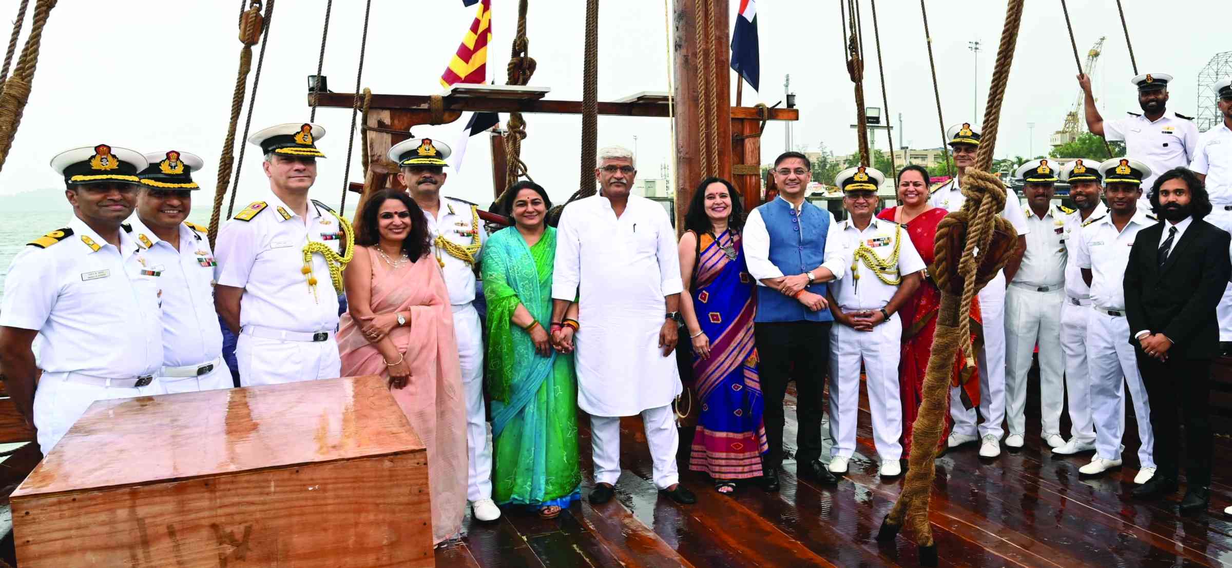 The Navy named the ancient Stitched ship as INSV Kaundinya at a ceremonial event recently held at Naval Base, Karwar. The Minister of Culture Mr Gajendra Singh Shekhawat presided over the event as the Chief Guest, marking the culmination of an extraordinary project that celebrates India’s rich shipbuilding heritage.